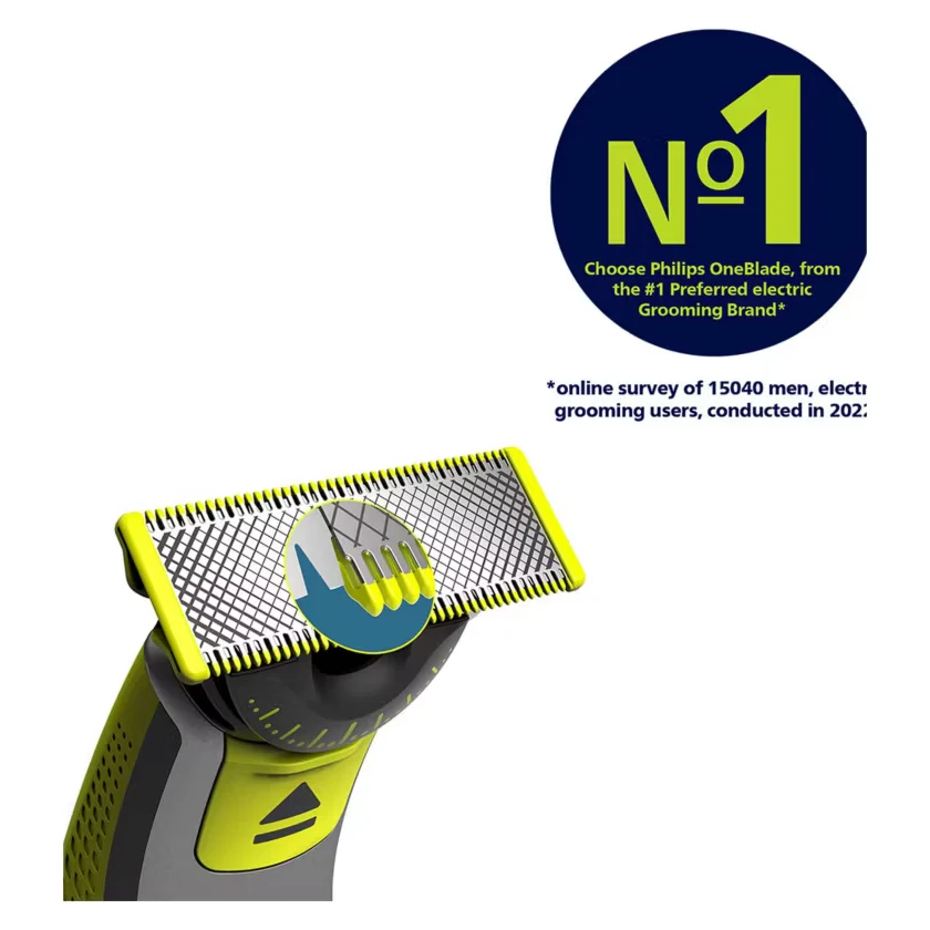 The new OneBlade 360 trims, edges and shaves any length of hair, more effortlessly than ever. Easily shave and trim, even the most difficult to reach areas with fewer* passes. Forget about using multiple steps and tools. OneBlade does it