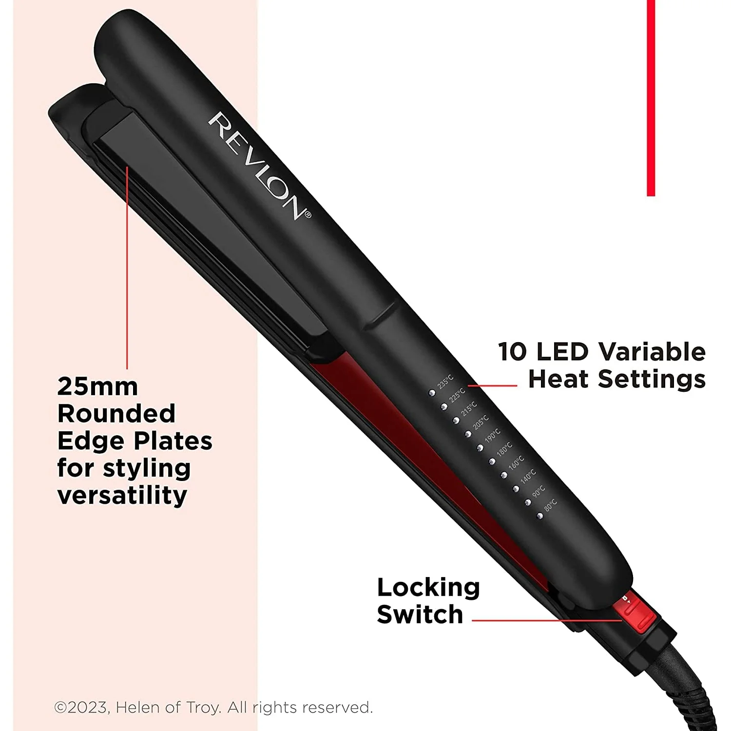 - CUSTOMISABLE TEMPERATURE: Choose between 10 LED precise temperature settings up to 235°C for temperature customisation.